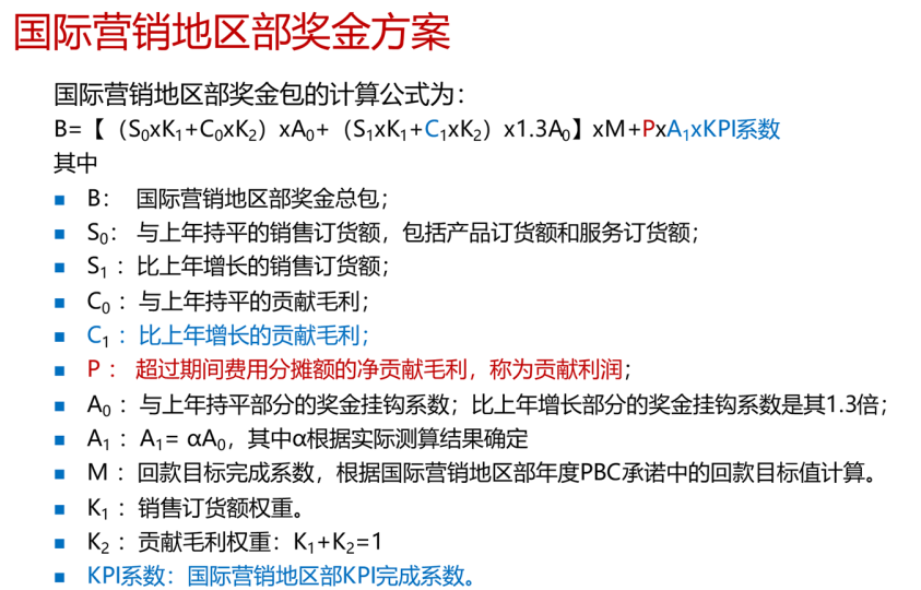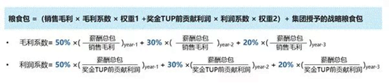 像上面地區(qū)部的獎(jiǎng)金,有這么多系數(shù),這么長(zhǎng)的公式,設(shè)計(jì)看似很精密,但是管理難度大。經(jīng)過(guò)多年閉環(huán)循環(huán)后,現(xiàn)在已經(jīng)簡(jiǎn)化成和歷史延長(zhǎng)線掛鉤的模式,清晰直觀,而且把糧食包整體考慮進(jìn)來(lái)了。